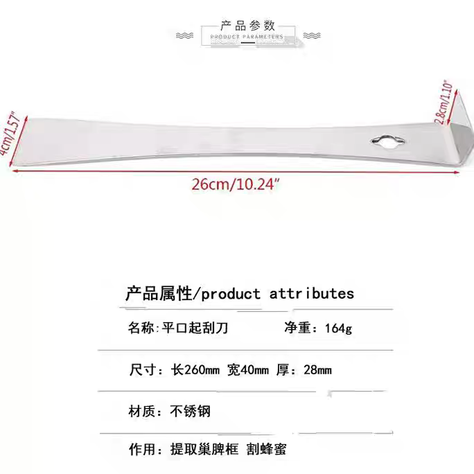 这款专业的取蜜专用刀和土蜂割蜜刀,专为养蜂人精心打造!采用优质不锈钢材质,刀刃锋利耐用,轻松割蜜不伤蜂巢。人性化手柄设计,握感舒适,长时间使用不累手。无论是传统木箱养殖还是现代蜂箱管理,都能高效完成采蜜任务,提升取蜜效率。轻便易携带,适合野外作业,是养蜂人不可或缺的实用工具。品质可靠,操作简单,让每一滴蜂蜜都纯净自然。选择我们的割蜜刀,享受轻松惬意的采蜜体验!