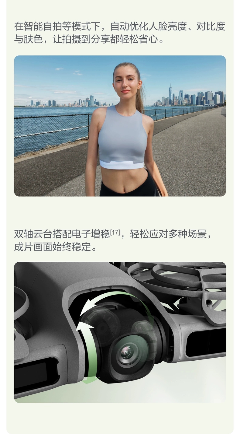 大疆NEO2无人机,轻巧便携,性能强悍!搭载4K超清摄像头,稳定拍摄每一刻精彩画面。智能跟随、一键短片功能,轻松驾驭专业拍摄。强劲续航,单次飞行可达30分钟,满足长时间创作需求。折叠设计,随身携带无压力,随时起飞捕捉灵感。三轴云台防抖,画面如丝般顺滑。适合旅行、vlog、航拍爱好者,NEO2带你探索全新视角,用科技记录美好生活!